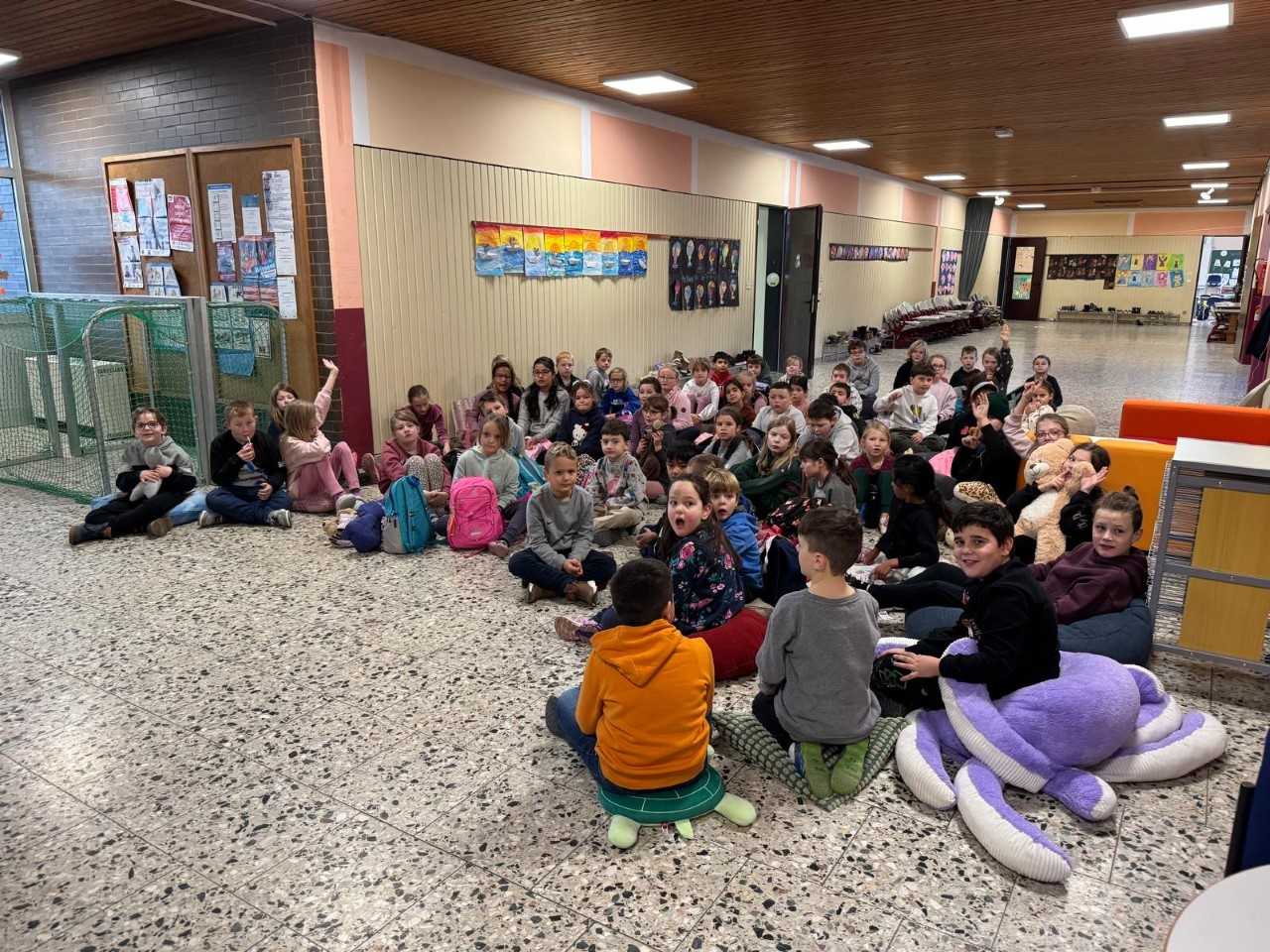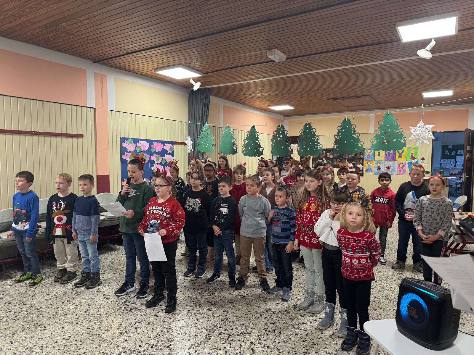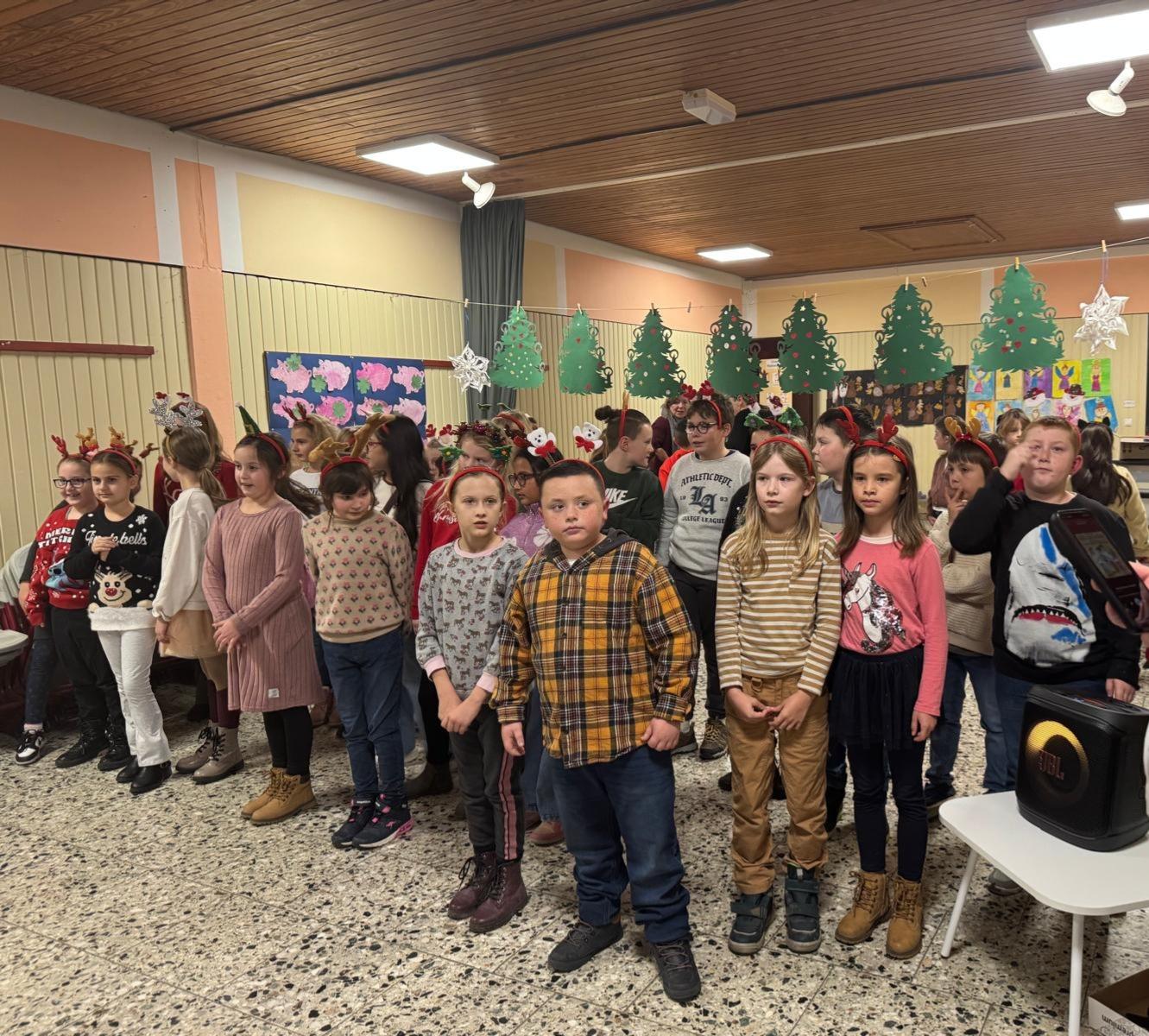 Mit leuchtenden Augen, roten Wangen und einer ordentlichen Portion Vorfreude strömten die Kinder, Eltern und Lehrkräfte in die festlich geschmückte Pausenhalle der Grundschule – denn endlich war es so weit: die jährliche Weihnachtsfeier, ein Höhepunkt im Schuljahr, der Groß und Klein gleichermaßen begeistert. Schon beim Betreten der Schule lag ein Hauch von Magie in der Luft. Riesige Schneemänner und Schneeflocken aus Papier, ein von den Betreuungskindern festlich geschmückter Weihnachtsbaum, Lichterketten und selbst gebastelte Sterne verwandelten die Schule in eine kleine Winterwunderwelt. Neben der „Bühne“ stand bereits die neue Musikbox mit Mikrofon sowie weihnachtliche Requisiten und Musikinstrumente lagen bereit – das Zeichen, dass gleich etwas Besonderes beginnen würde.
