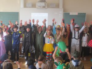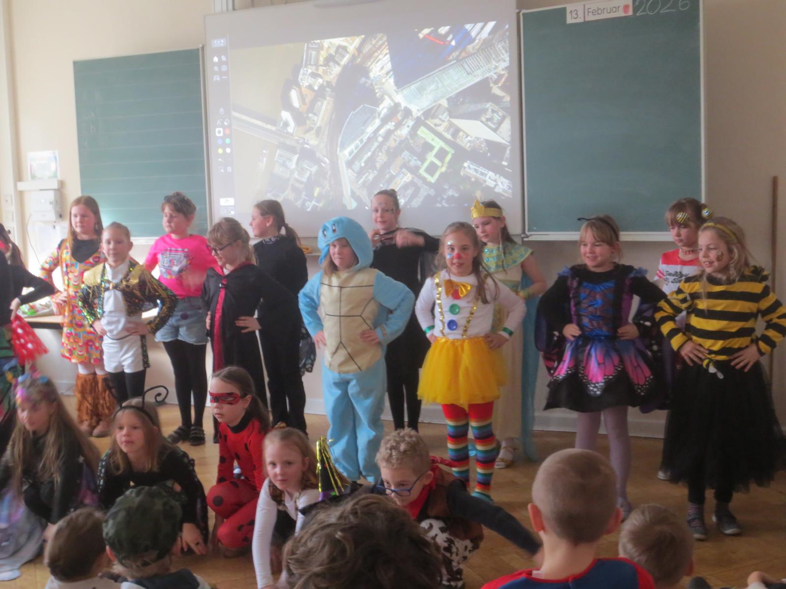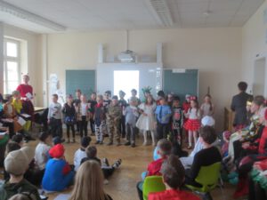 Ob beim Auftritt der Klasse 1 als echte „Superhelden“, beim fernsehreife „Faschings- Rätsel- Quiz“ der Drittklässler ohne Verlierer, bei der geschmetterten „GUTE LAUNE BOMBE“ der beiden zweiten Klassen, beim coolen „Clap-Snap-Jive“ der piepenten Küken aus Klasse 4 oder beim professionellen „80er-Jahre-Tanz“ des FFV- Nachwuchses… ÜBERALL spürte man EINFACH GUTE LAUNE!!! KLATSCH-STAMPF- HURRA!!!